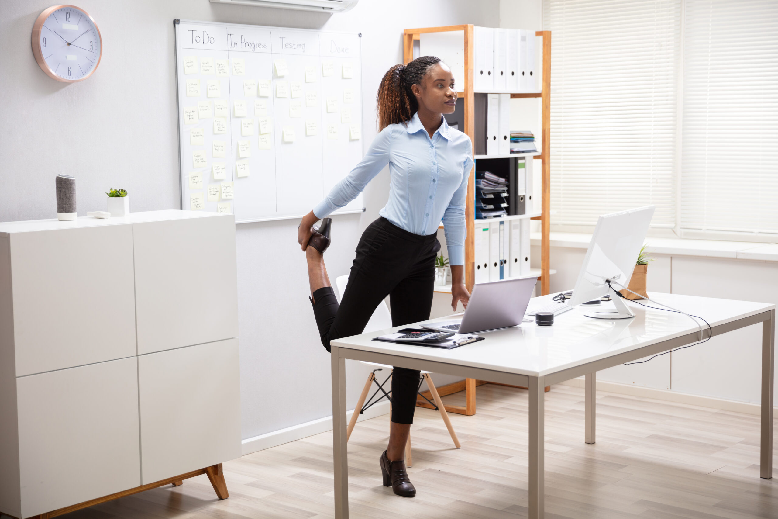Dolgoročno sedenje brez prekinitev lahko negativno vpliva na mišice in sklepe. Z vključevanjem kratkih aktivnih odmorov v vsakodnevno rutino zmanjšamo to tveganje. Vsako uro si vzemite nekaj minut za vstajanje,